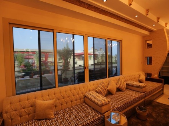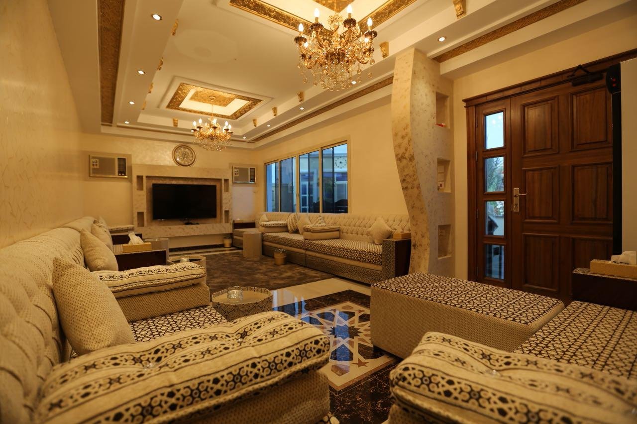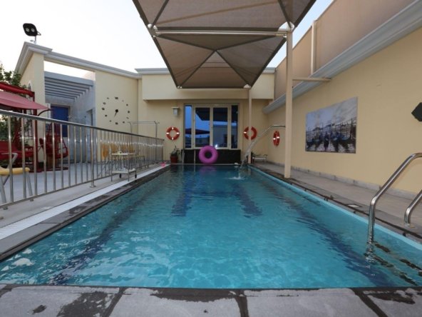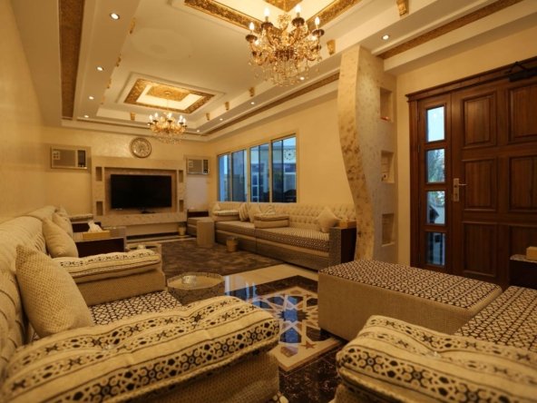 – مكونة من 3 غرف و3 دورات مياه ومطبخ وغرفة حارس ومسبح ومستودع